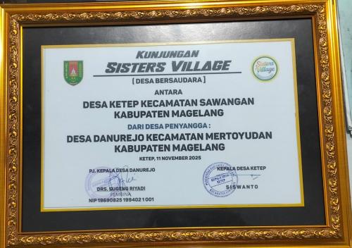 Sister village adalah program kerja sama antar desa di mana satu desa (desa penyangga) membantu desa lain yang berada di kawasan rawan bencana saat terjadi bencana. Pada hari ini Selasa tanggal 11 November 2025 Pemerintah Desa Danurejo Kecamatan Mertoyudan dalam rangka kegiatan berkunjung ke Pemerintah Desa Ketep Kecamatan Sawangan adalah untuk berkoordinasi terkait dengan desa bersaudara (sister village). Asal - muasal hubungan Desa bersaudara tersebut dikarenakan pada tahun 2010 terjadi letusan gunung merapi yang mengakibatkan beberapa kerugian pada masyarakat sekitar Gunung merapi dan diharuskan untuk mengungsi. maka sebagian besar warga desa ketep mengungsi ke wilayah Desa Danurejo tepatnya di Gedung Bulog Kabupaten Magelang hingga sampai sekarang menjadi desa bersaudara.