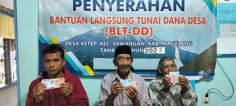 Pada hari jum'at tanggal 04 Juli 2025 Pemerintah Desa Ketep menghadirkan peserta penerima bantuan langsung tunai (BLT) yang bersumber dari Dana Desa. Dengan senang hati Kepala Desa Ketep Bapak Siswanto bisa ketemu langsung dengan penerima BLT. Saat itu sebelum acara penyerahan di dahului dengan penyuluhan walaupun hanya sekitar 15 menit. Isi dari penyuluhan adalah bentuk bantuan dari pemerintah bermacam-macam diantaranya bantuan PKH, DBHCHT, PIP, KIS dan lainnya. pada kesempatan ini peserta yang hadir adalah salah satu yang tercantum dalam kelompok penerima BLT DD yang bisa jadi ganti tahun bisa berubah karena perputaran ekonomi, dengan harapan semoga bapak ibu bisa berubah dalam perekonomian meningkat dan sejahtera. selanjutnya disampaikan teknis pembagian BLT DD dan menandatangani Tanda terima BLT DD dan di dokumentasikan dengan menyertakan KTP yang bersangkutan.