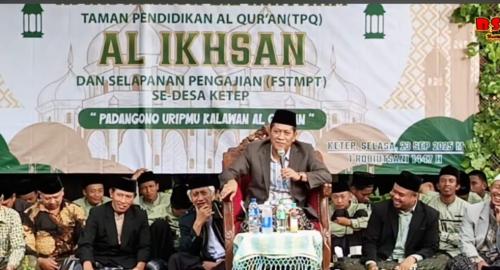 Dalam rangka penyelenggaraan pengajian Attasyakur lil ikhtitam Taman Pendidikan Al-qur'an (TPQ) Al ikhsan dan Selapanan pengajian forum silahturohmi takmir masjid dan pengasuh TPQ (FSTMPT) se-Desa Ketep Kecamatan Sawangan Kabupaten Magelang, yang bertepatan pada hari Selasa pon tanggal 23 september 2025 atau tanggal 01 Robiul tsani 1447 Hijriyah. Saat ini dengan tema "Padangono uripmu kalawan Al-qur'an" kegiatan ini berjalan dengan hikmad dan lancar hingga selesai acara. Adapun tamu yang hadir dalam pengajian ini adalah Ketua MWC NU, Ketua PCM Muhammadiyah, Kepala KUA Sawangan beserta stafnya, Bapak -Ibu guru SMP N2 Sawangan, Ustad/zah beserta santriwan-santriwati Ponpes Attauhid Kapuhan, Jama'ah Masjid atau Mushola seDesa Ketep dan Guru beserta Santriwan-santriwati TPQ Al-ikhsan Ketep.